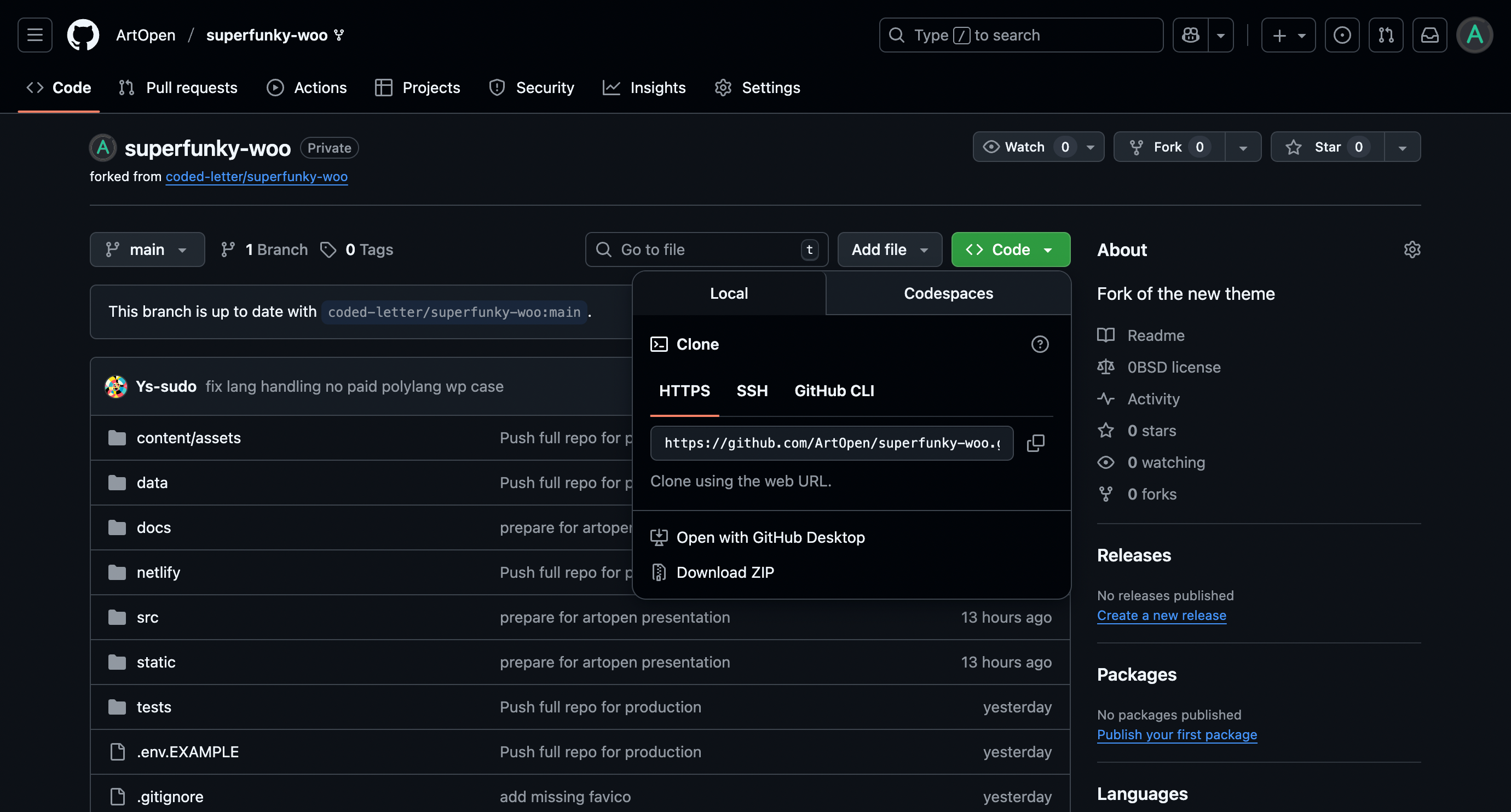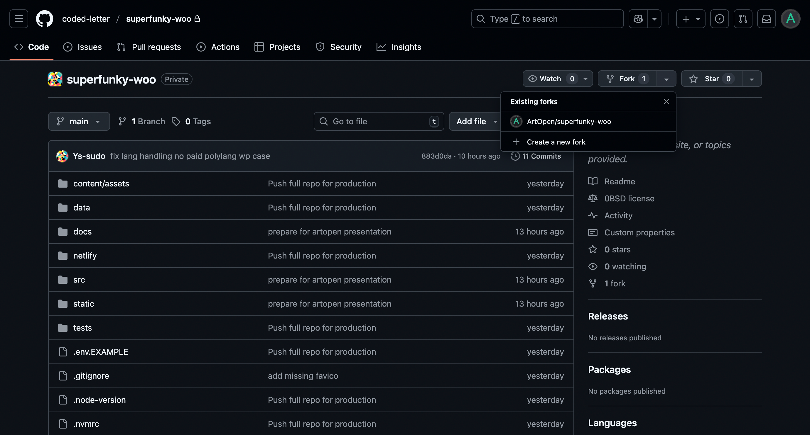 After You are given access create a private fork in Your github account of the superfunky-woo repository, this way You will stay up to date with the updates from us.
